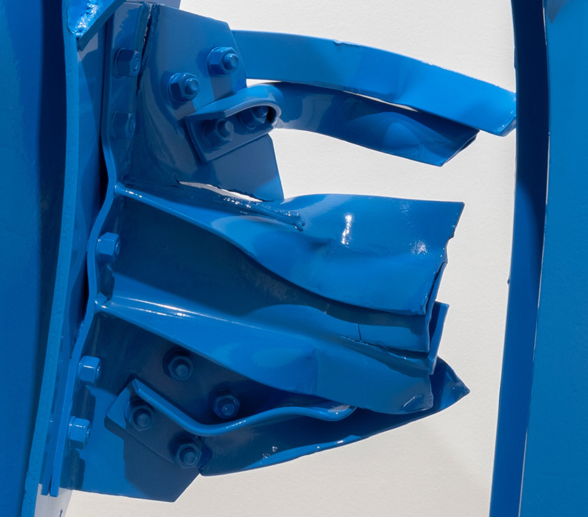 Blandt disse var den restaurerte og nylakkerte blå skulpturen “Miramichi # 3” fra 2010-23, som forankrer denne utstillingen. Skulpturen, som er laget av omarbeidet rivingstål, ble første gang vist i Galleri Riis i 2011 sammen med andre verk fra samme serie, produsert i New Brunswick, Canada med materialer fra en nedlagt industribygning.