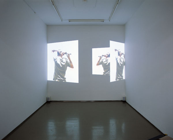For the second time, Galleri Riis is exhibiting the work of Dutch artist, Dirkjan van der Linde. Van der Linde received his education from the art academy in Breda, Holland, and the Royal Academy of Fine Art in Oslo. He defines his art primarily as sculpture, although the medium is often sound (such as in the work “Jump" shown at Galleri Riis in 1999), photography or video in combination with simple structures in MDF or other foundation materials. In the gallery’s project room his video loop, “Hair Piece", is projected, and at the end of the entrance way, his video sculpture, “Private Eye", is shown.
